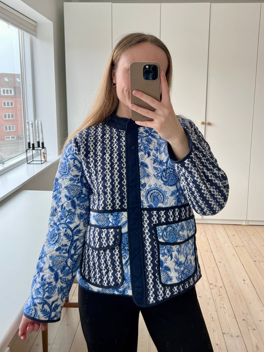 Gabi jakken - En elegant quiltet jakke i smukke blå nuancer, der skaber et roligt og harmonisk udtryk. Med sit klassiske design og fine blå blomster er Gabi nem at style og passer perfekt til ethvert outfit.