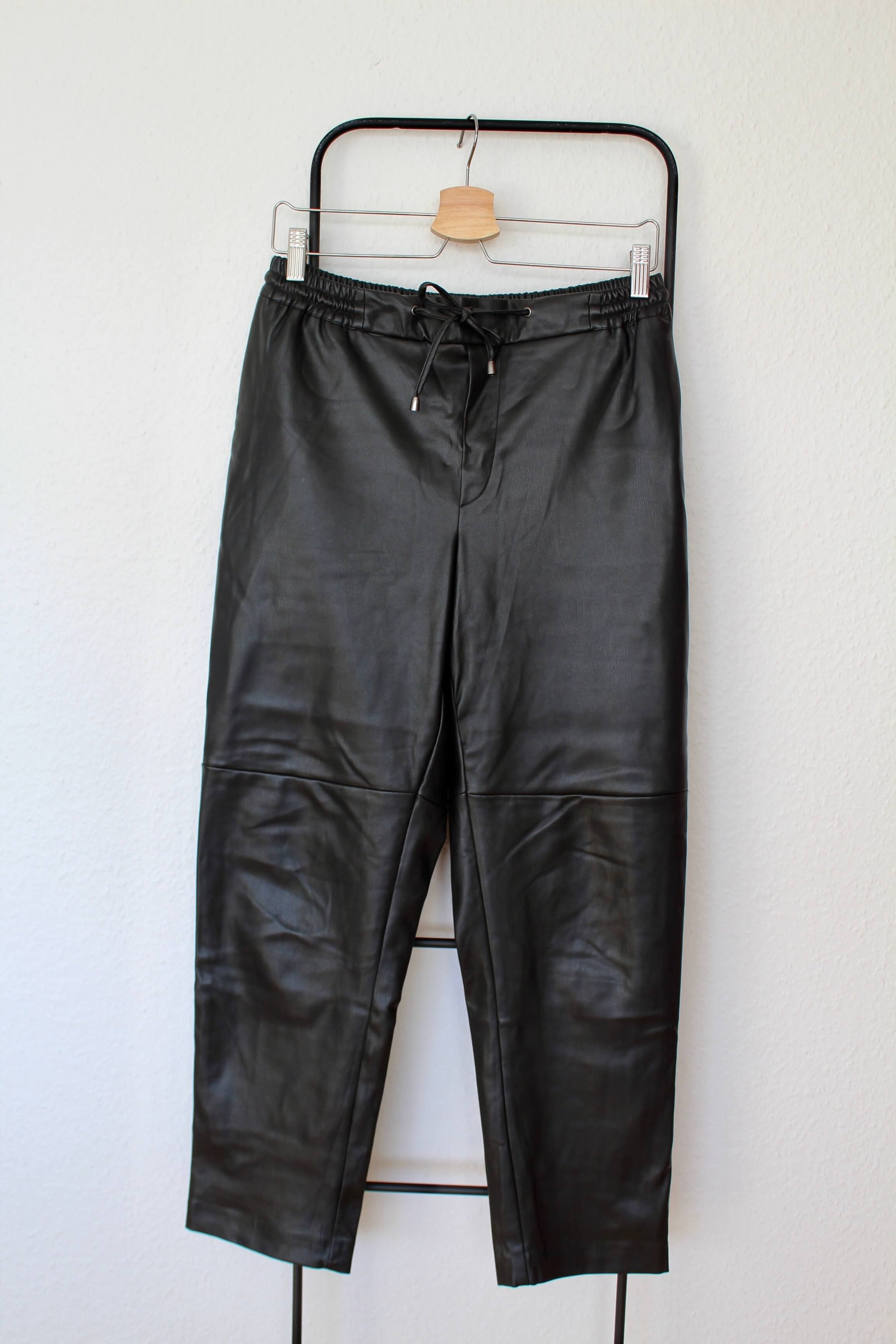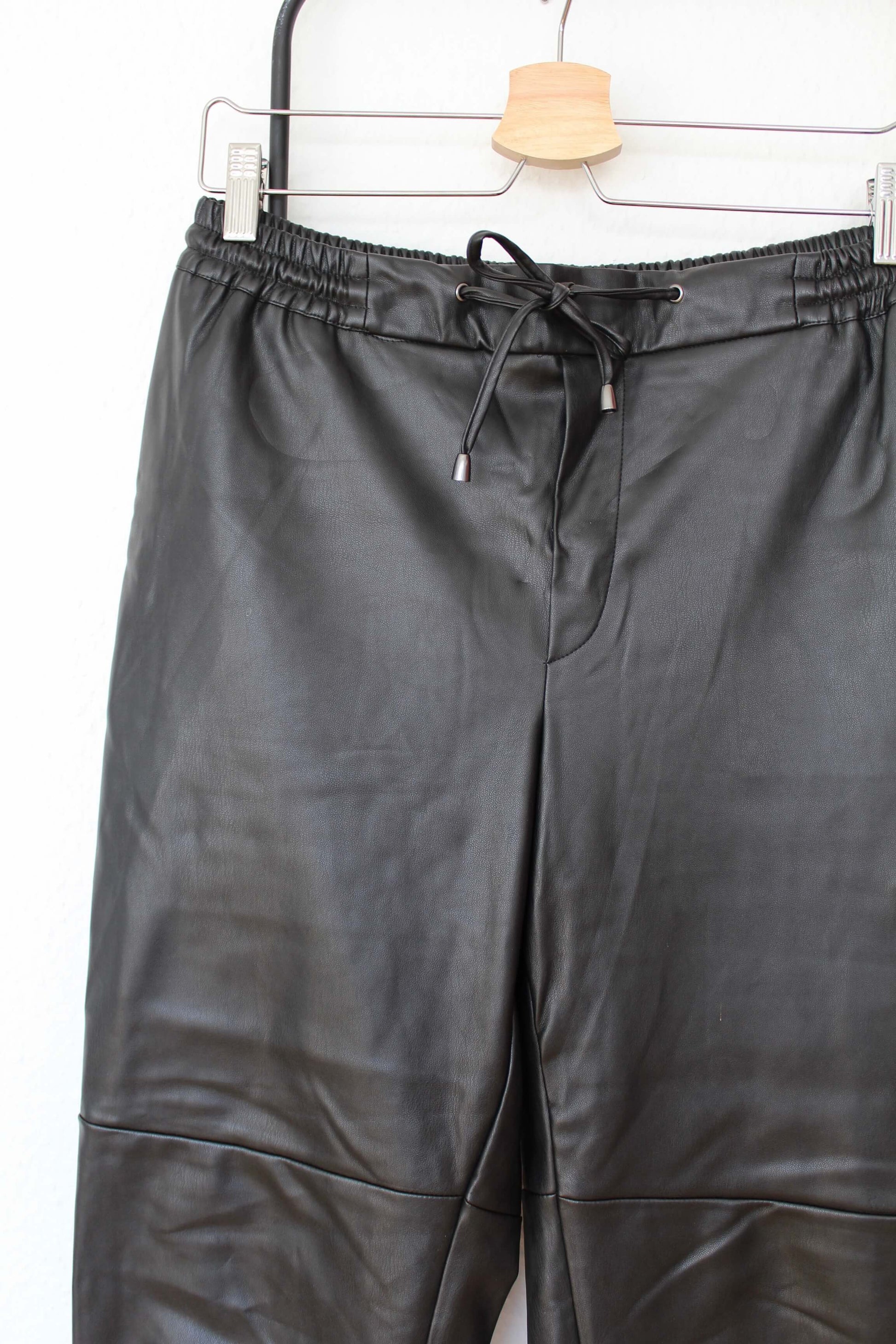 Fede læder/skind bukser fra Mango Casual i størrelse M. Bukserne er i sort imiteret læder materiale og de har elastik samt snørrebånd i livet. De har to lommer foran og to snydelommer bagpå ♡