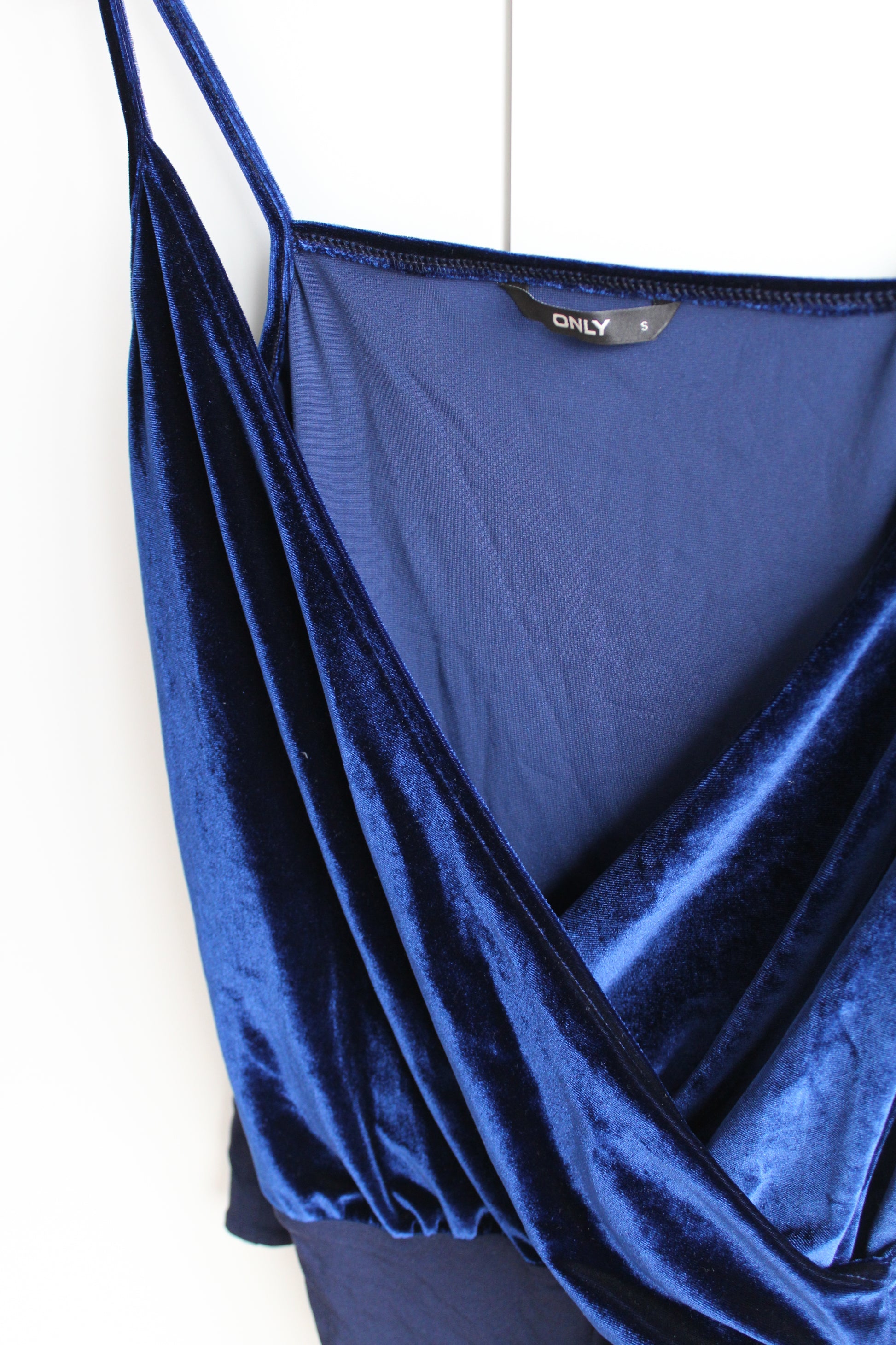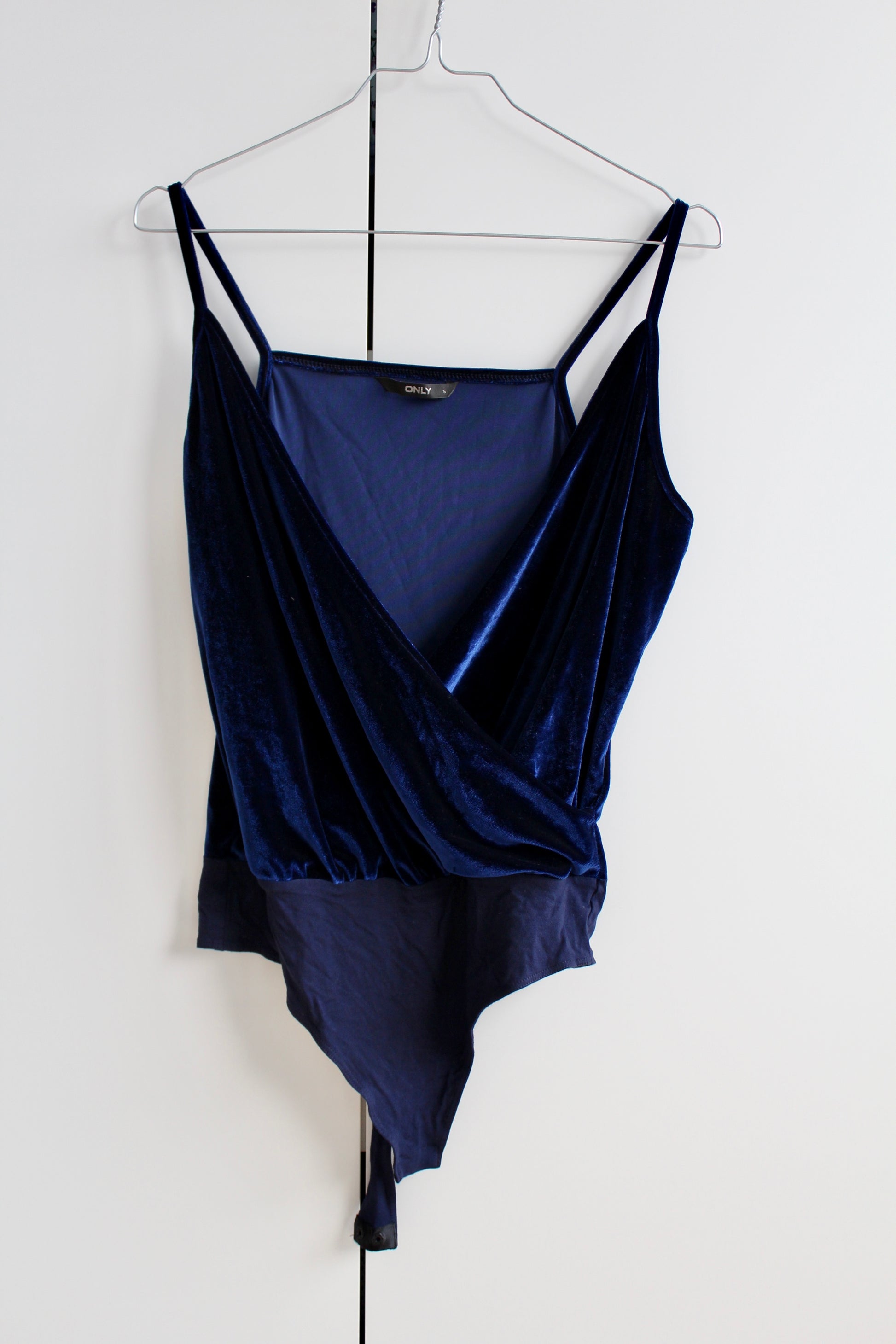 Smukkeste blå bodystocking i velourmateriale. Den er fra Only og er størrelse S ♡