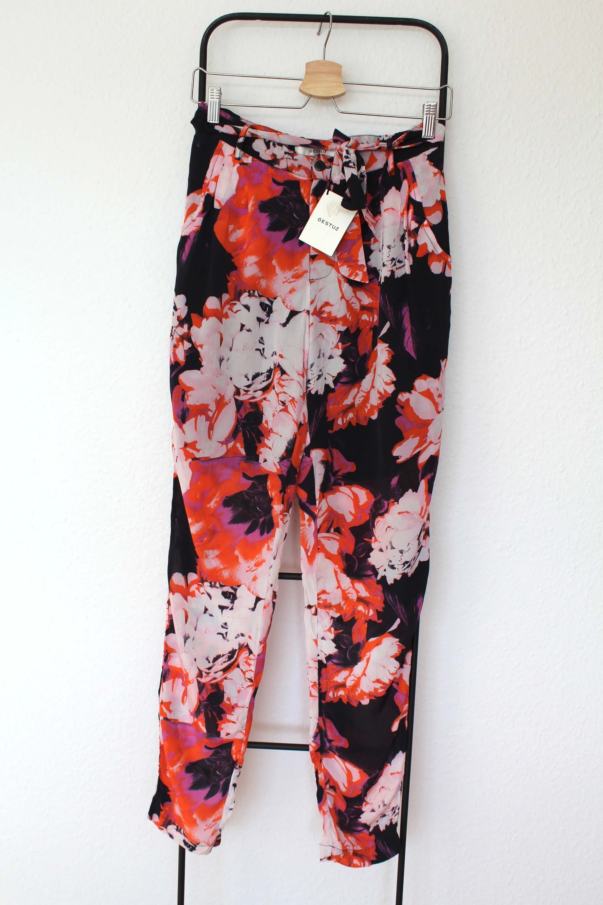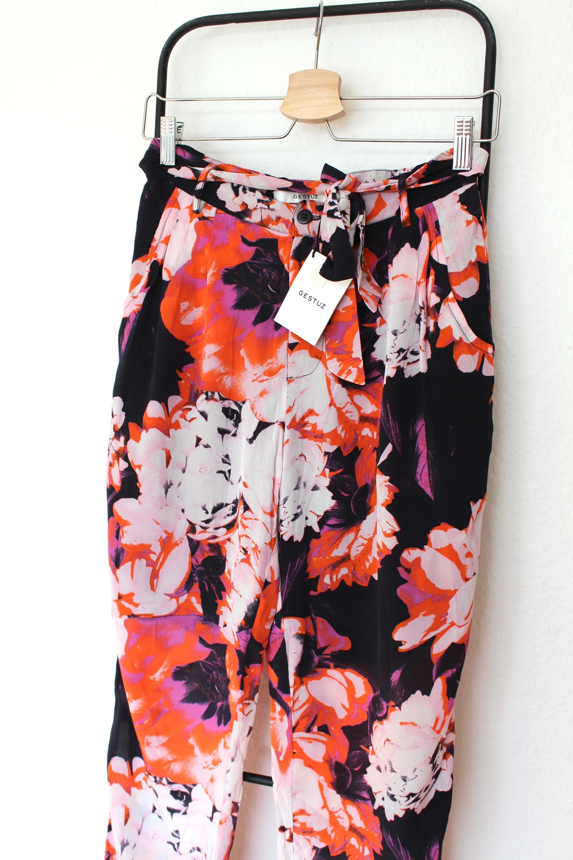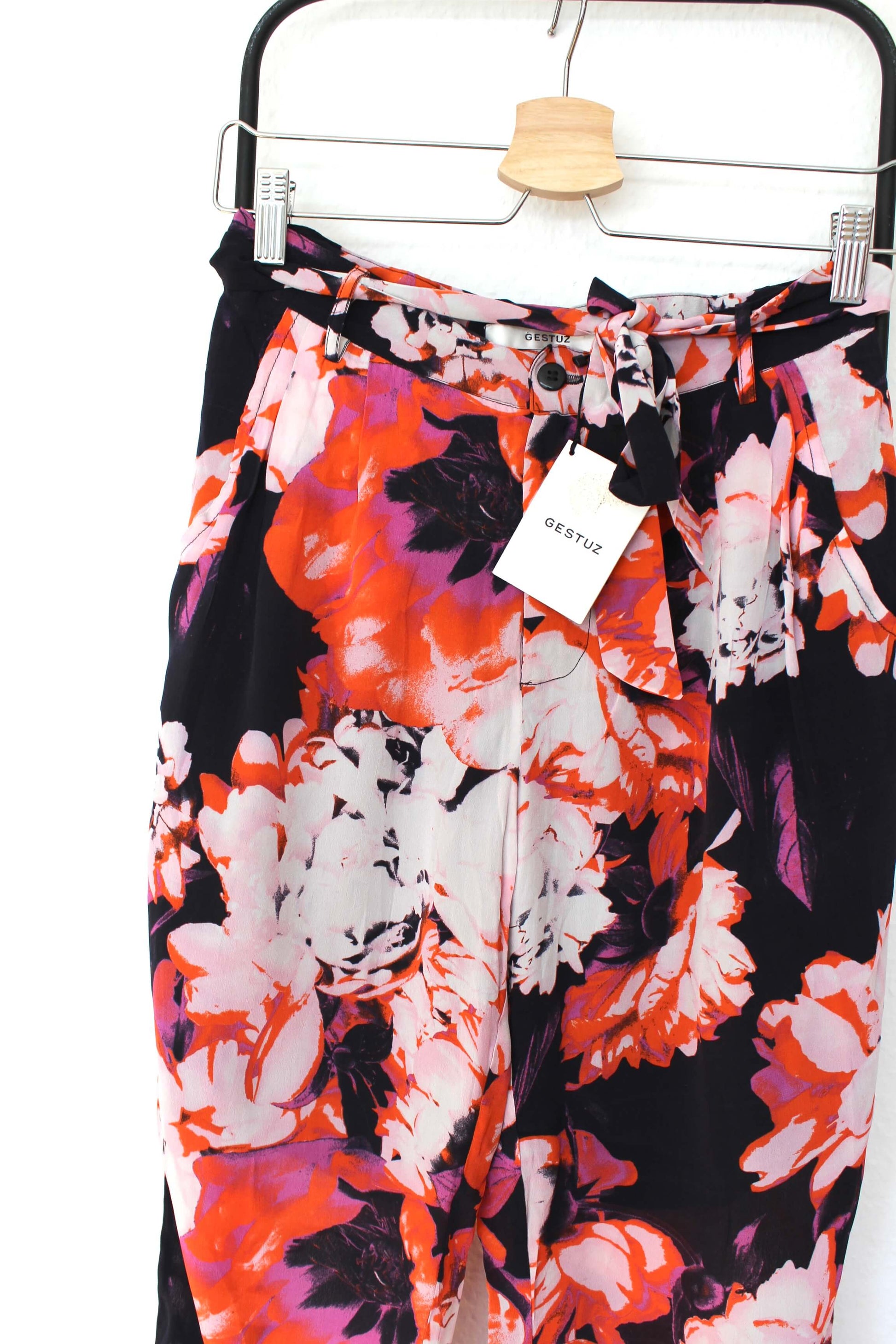 Fine bukser fra Gestuz i størrelse 34 - vurderes til også at passe en 36. Bukserne har et blomstret mønster i forskellige farver. De lukkes med lynlås og knap. Der er to lommer foran samt to snydelommer bagpå. Der medfølger aftageligt bindebælte. Bukserne er aldrig brugt og er nye med tag ♡