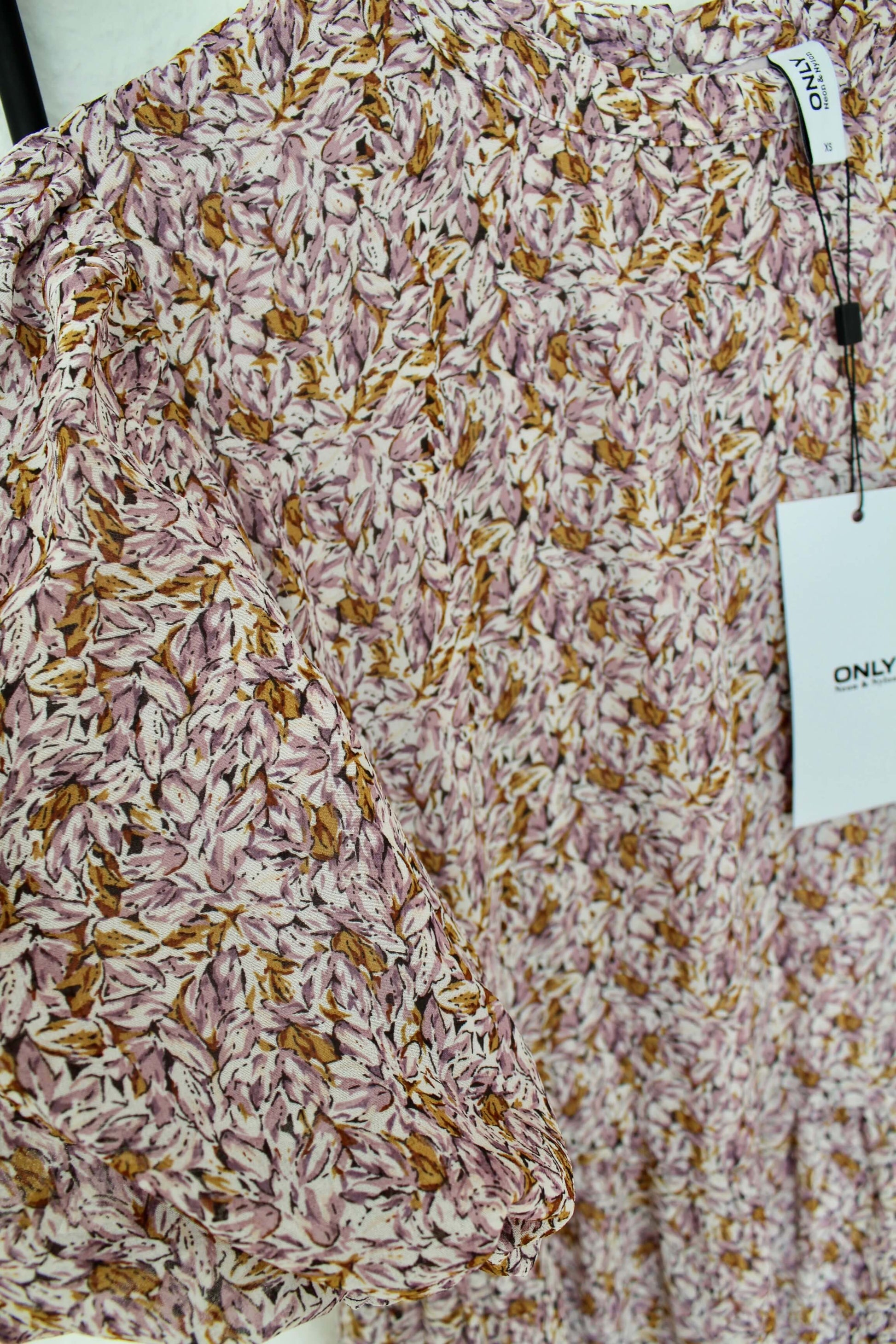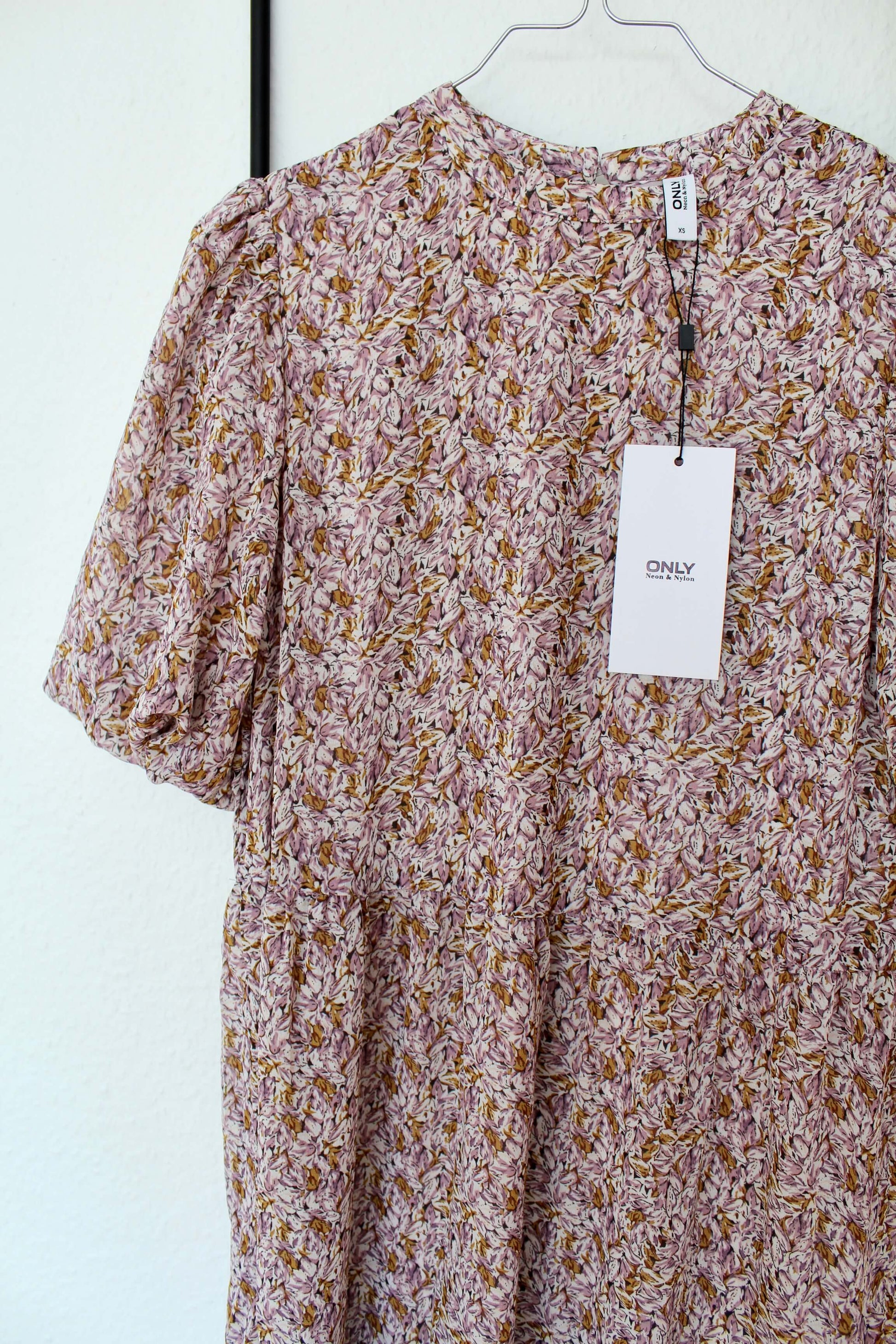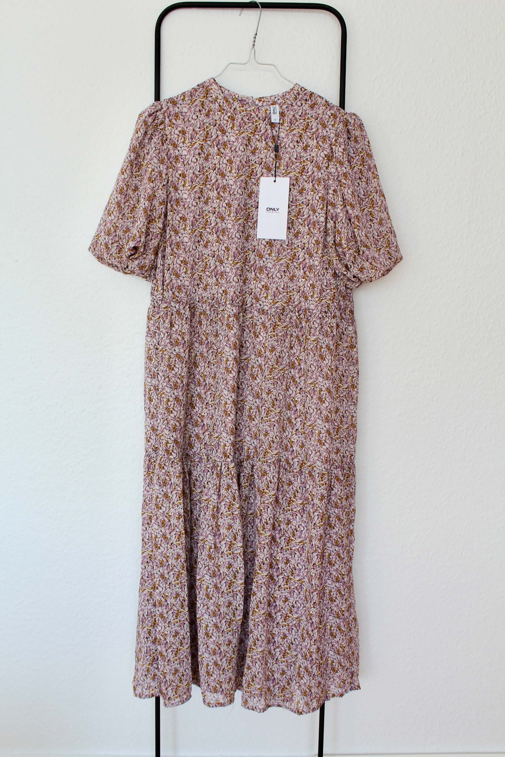 Smuk lang kjole fra Only i størrelse XS - vurderes til også at passe en S. Kjolen har et mønster i farverne lilla, hvid og gul/brun. Kjolen er helt ny med tag ♡