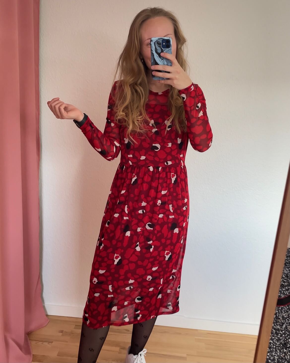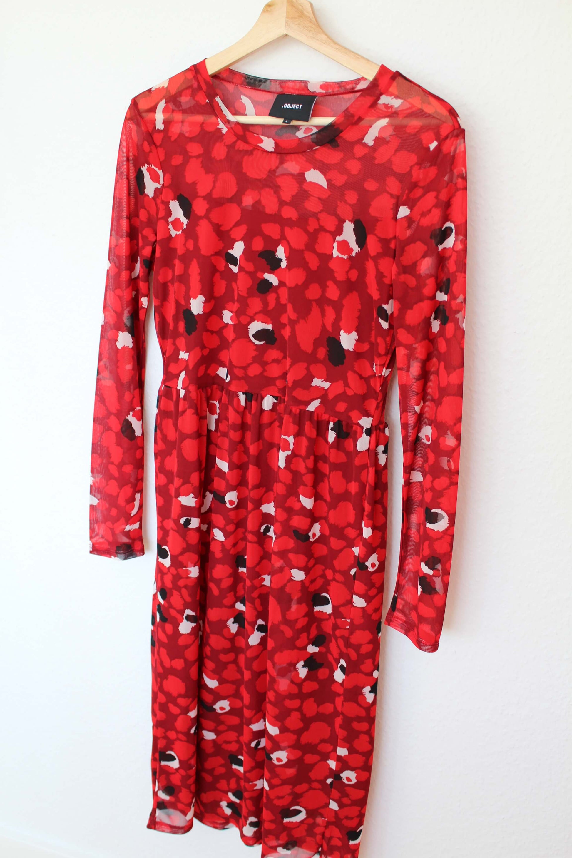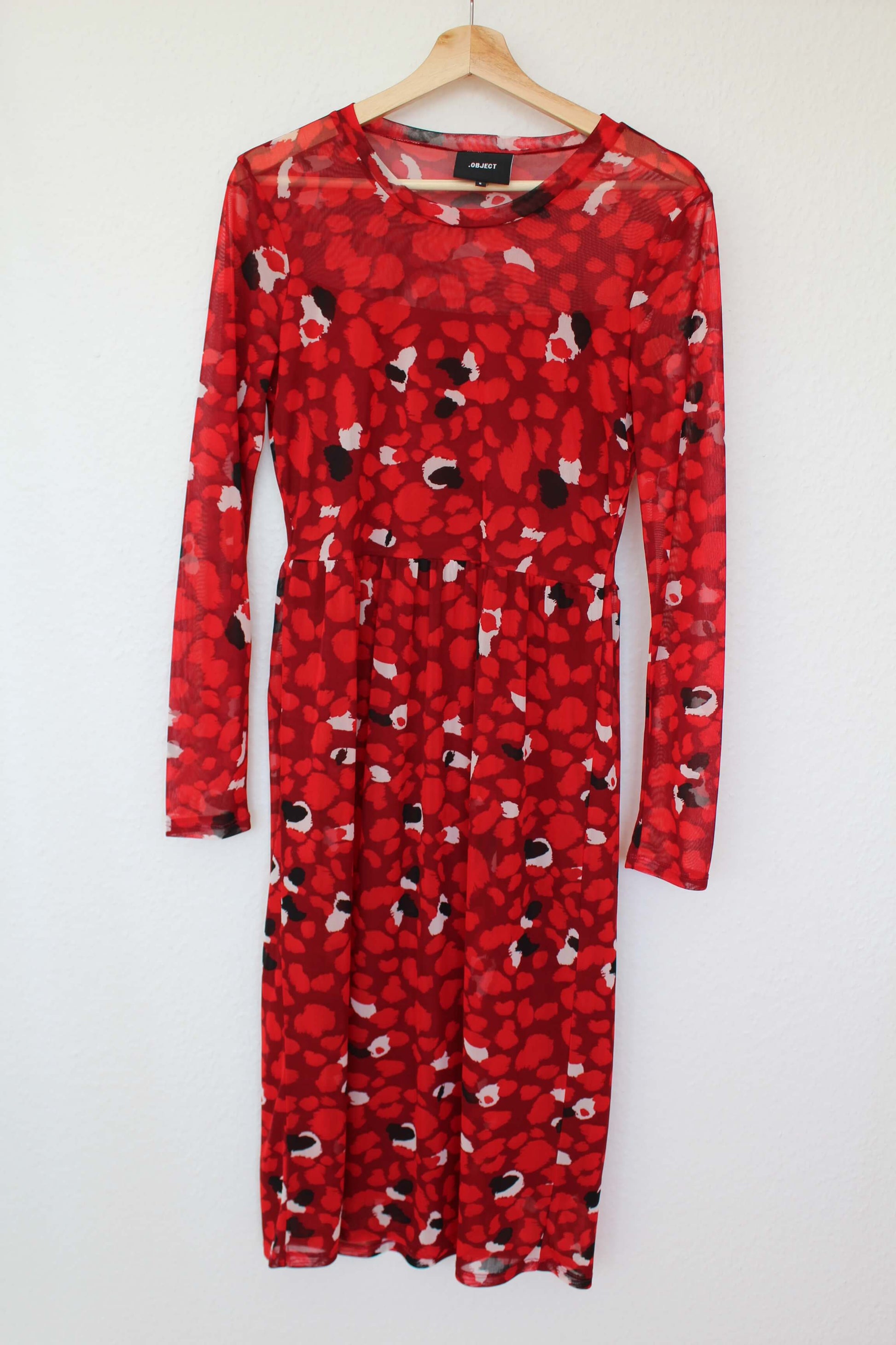 Fineste røde kjole fra Object i størrelse S. Kjolen er let gennemsigtig og der medfølger underkjole (sidder fast på kjolen i forvejen). Kjolen er i flot stand ♡