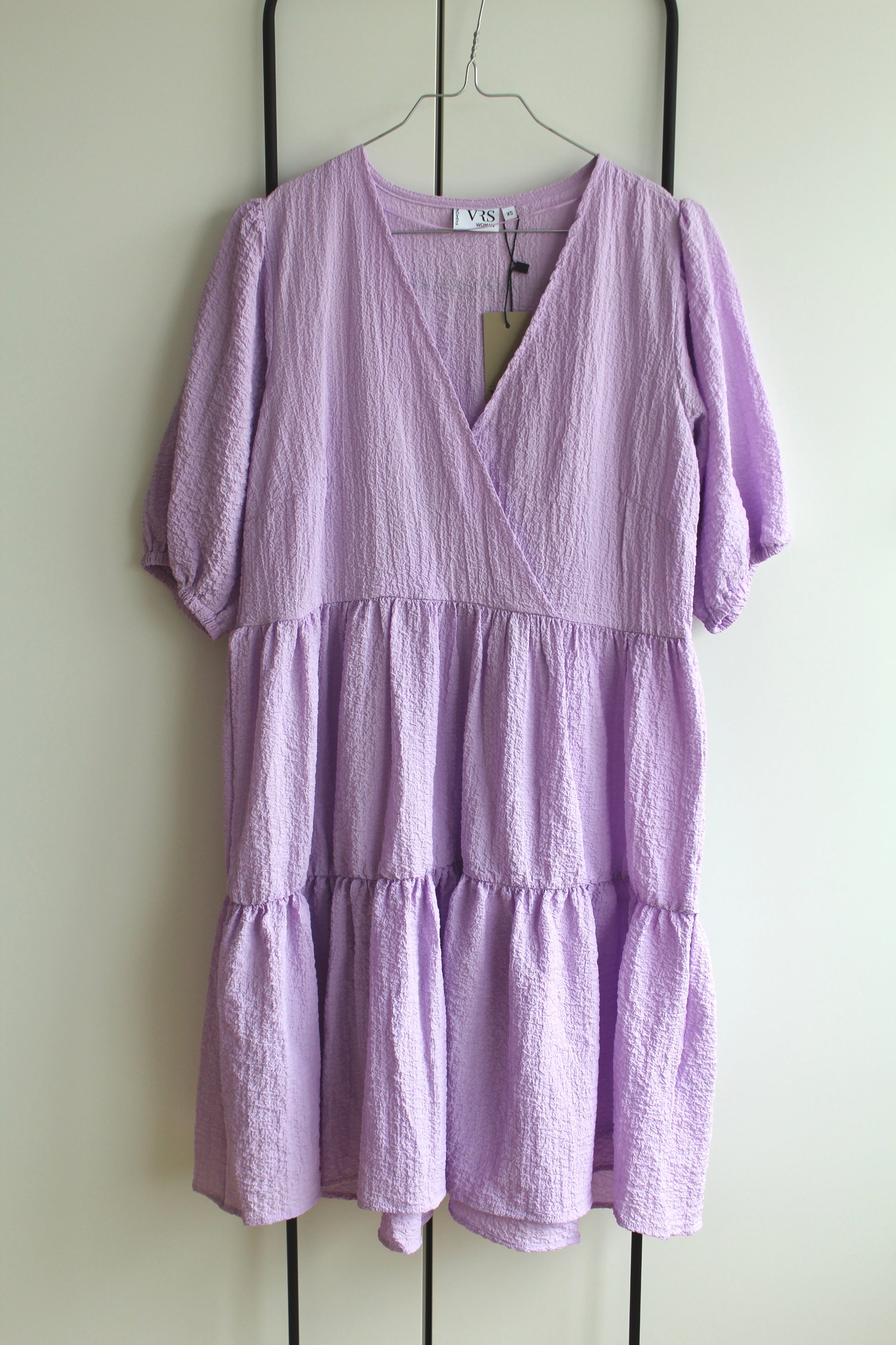 Smukkeste lyslilla kjole fra VRS i størrelse XS (34/36). Kjolen har v-uskæring og elastik i ærmeåbningerne. Den er ny med tag ♡