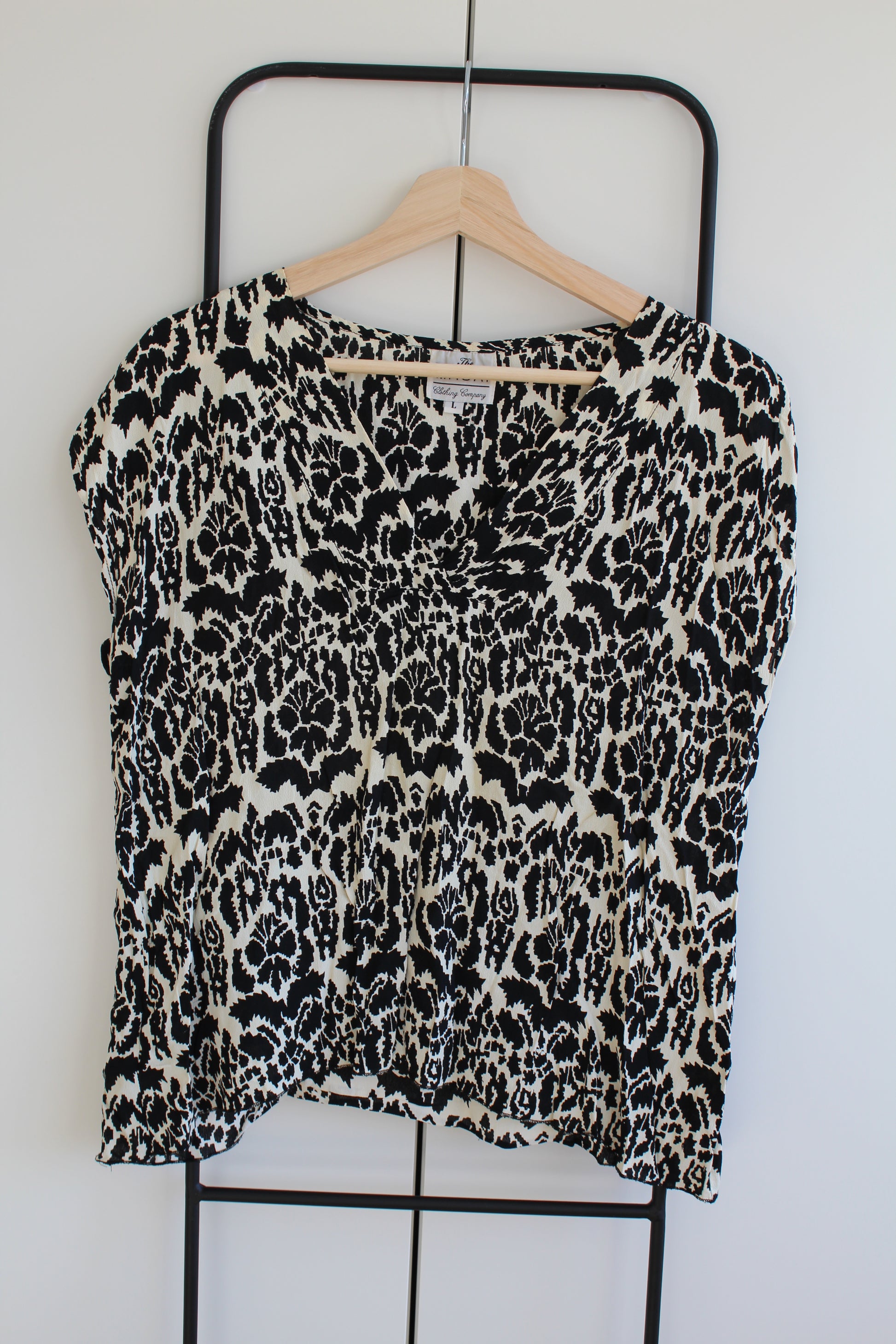 Fin og let bluse fra Masai i størrelse L - vurderes til også at passe en M, da den har løstsiddende pasform. Blusen har v-udskæring og korte ærmer ♡