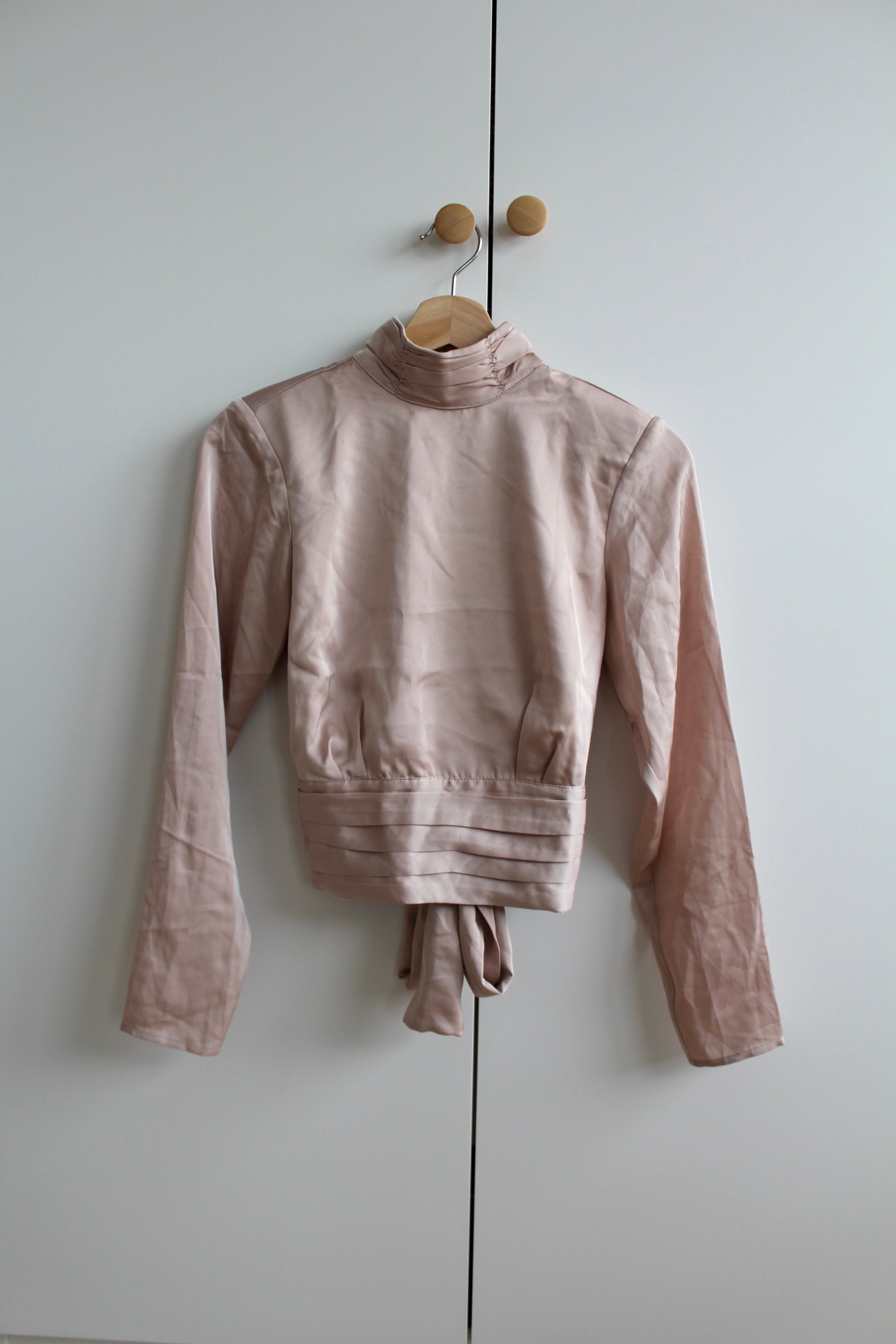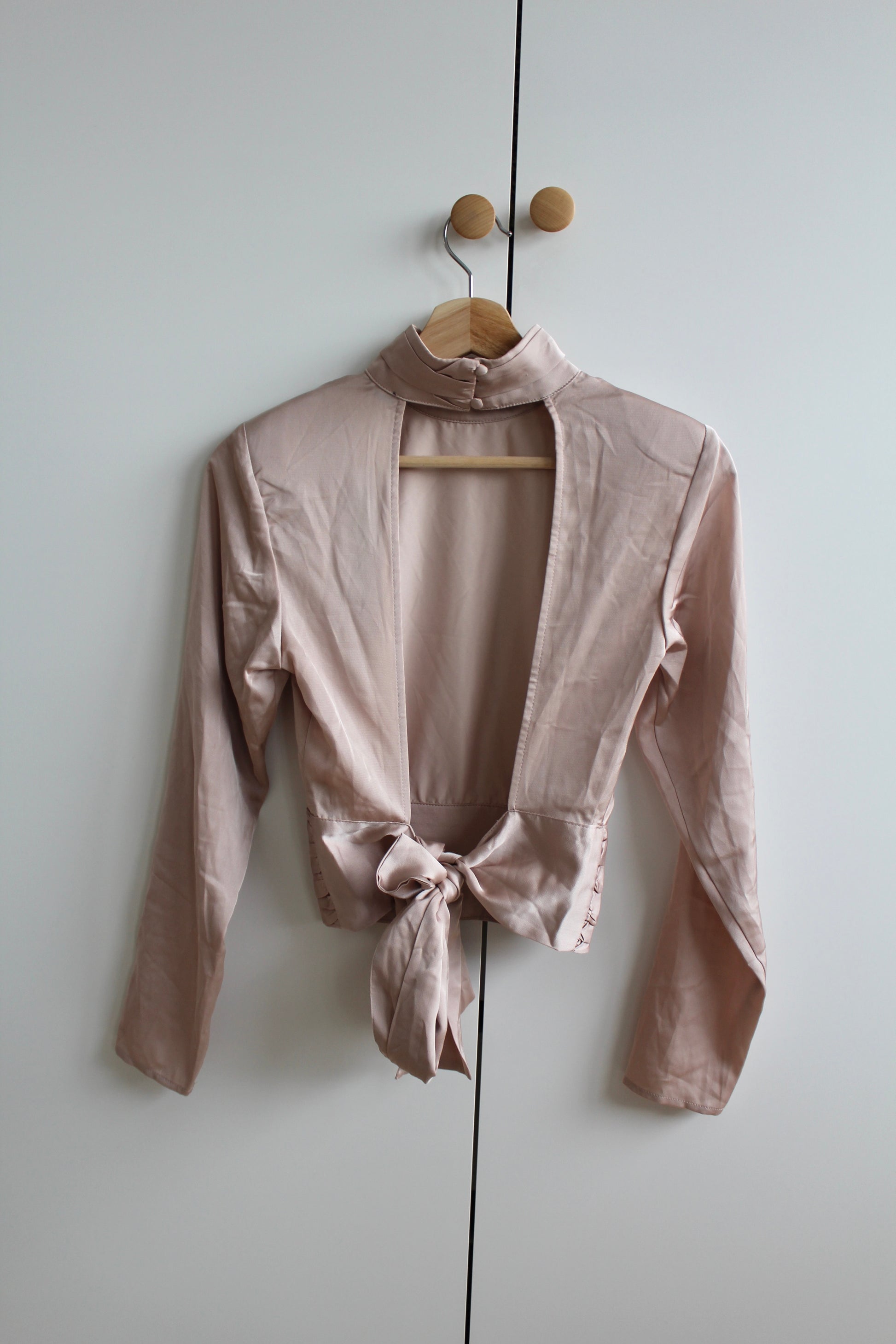 Smuk langærmet top med en åben ryg fra Gina Tricot i størrelse 34. Toppen er perfekt til de finere anledninger, og den har et bindbart bånd på bagsiden. Den har en høj udskæring med knapstolpe på halsen og rynkede detaljer på udskæringen og ved taljen. Toppen er ny med tag ♡