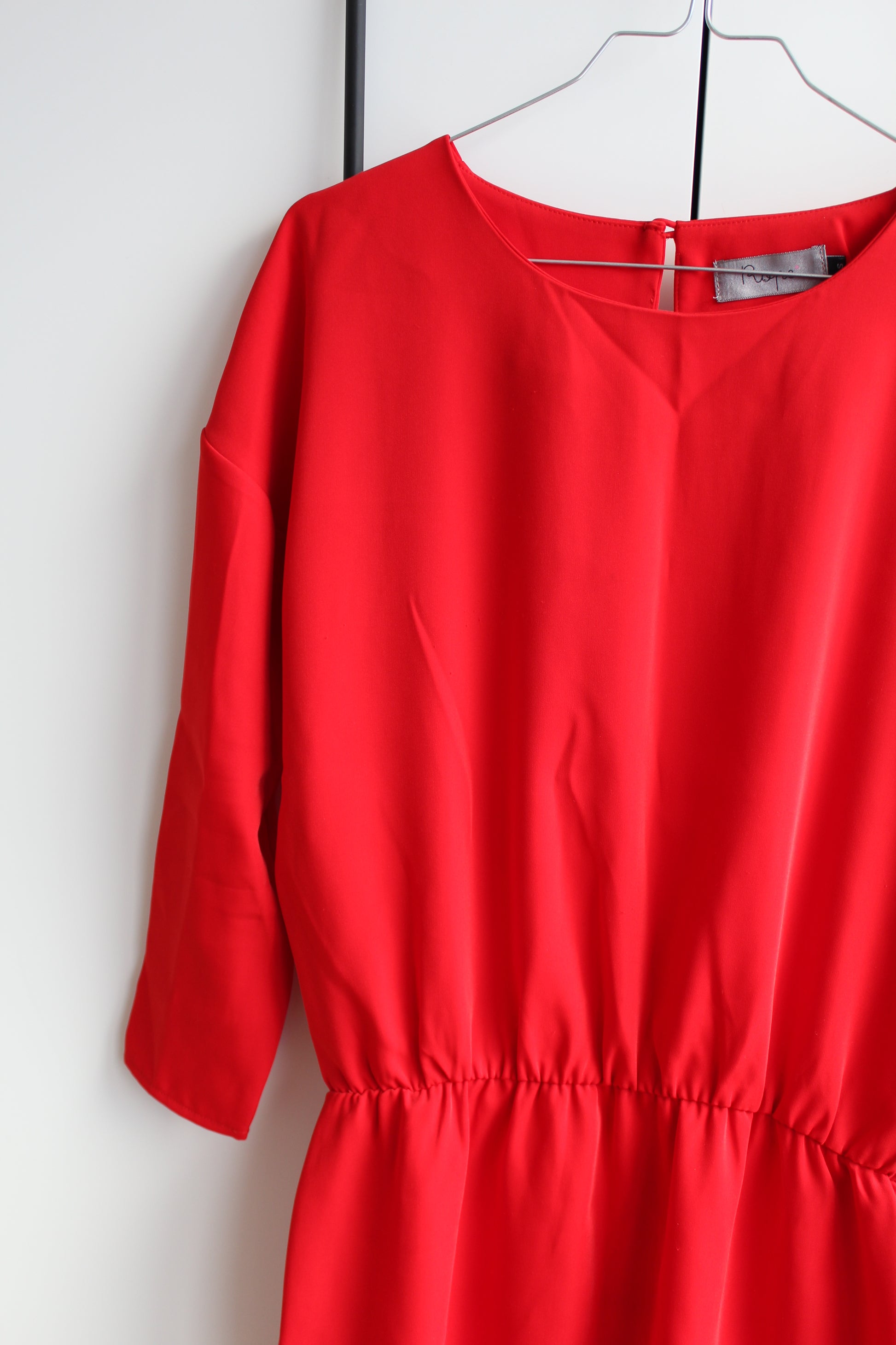 Den smukkeste røde kjole fra Rope i størrelse S. Kjolen er købt i Loft by Loftet og er i forholdvis tungt materiale, som falder flot. Den har svagt åben ryg og elastik ved livet ♡