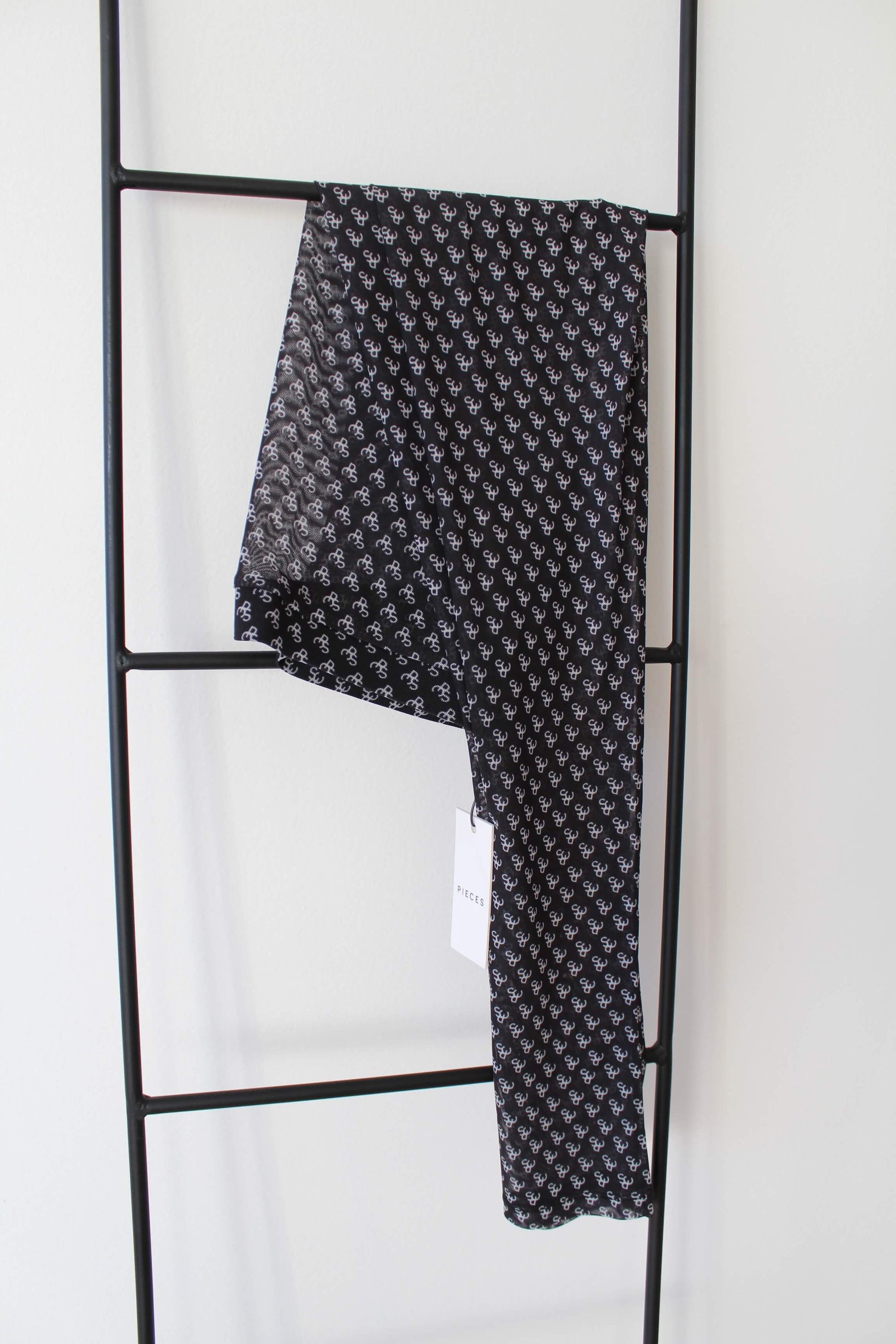Skønne leggings fra Pieces i størrelse S. De er sorte med hvidt mønster og har elastik i taljen. De er helt nye med tag ♡