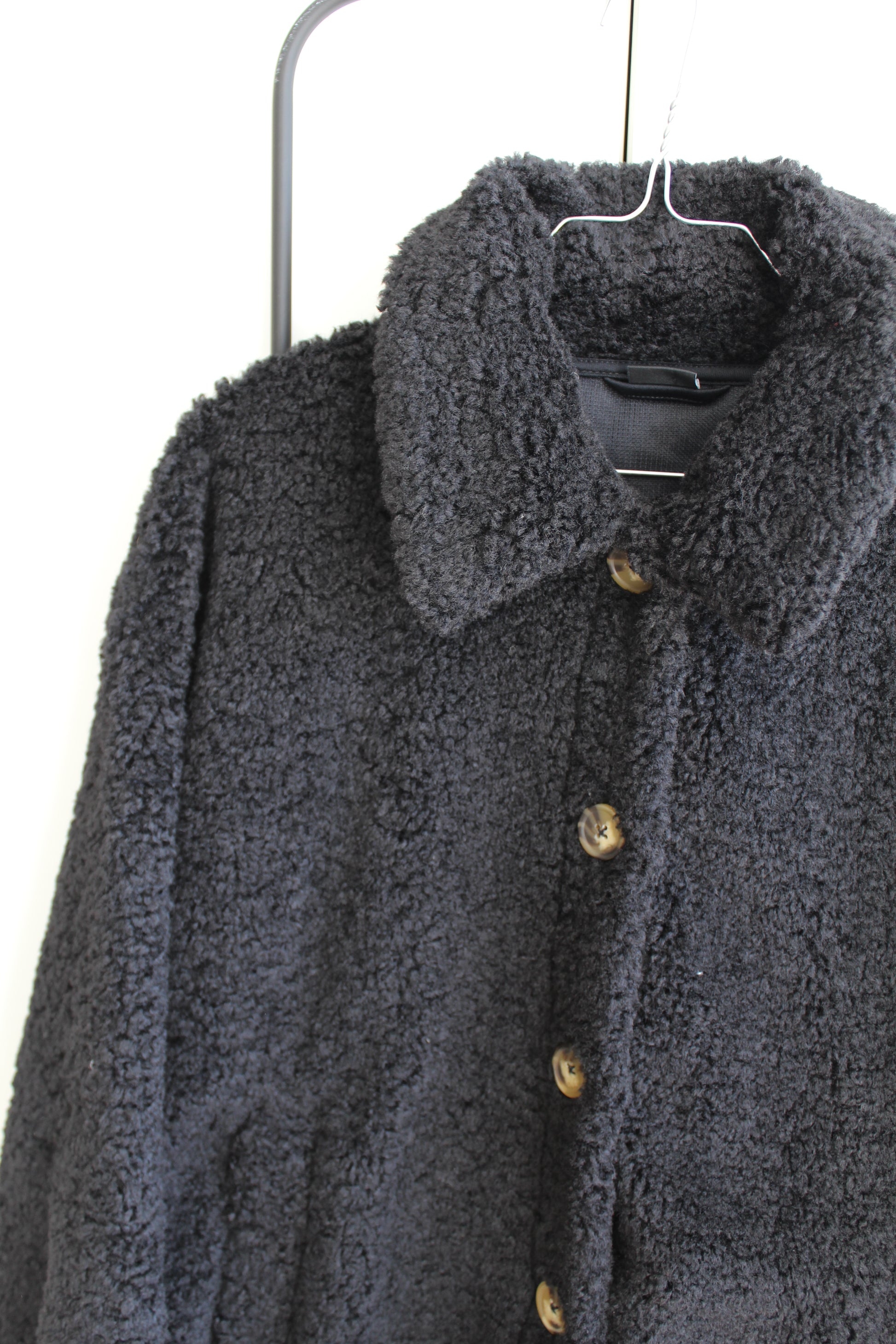 Skøn teddyjakke med en oversize pasform i størrelse S fra Gina Tricot. Jakken er sort og har naturfarvede knapper foran samt to lommer ♡