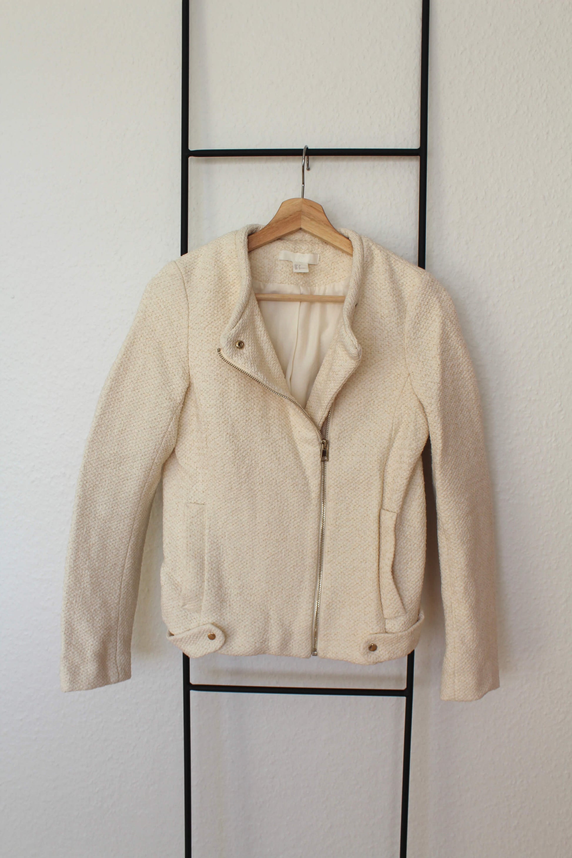 Flot bikerjakke i strukturvævet bomuldsblanding. Jakkens farve er naturhvid/cremefarvet og den har skrå lynlås foran samt sidelommer ♡