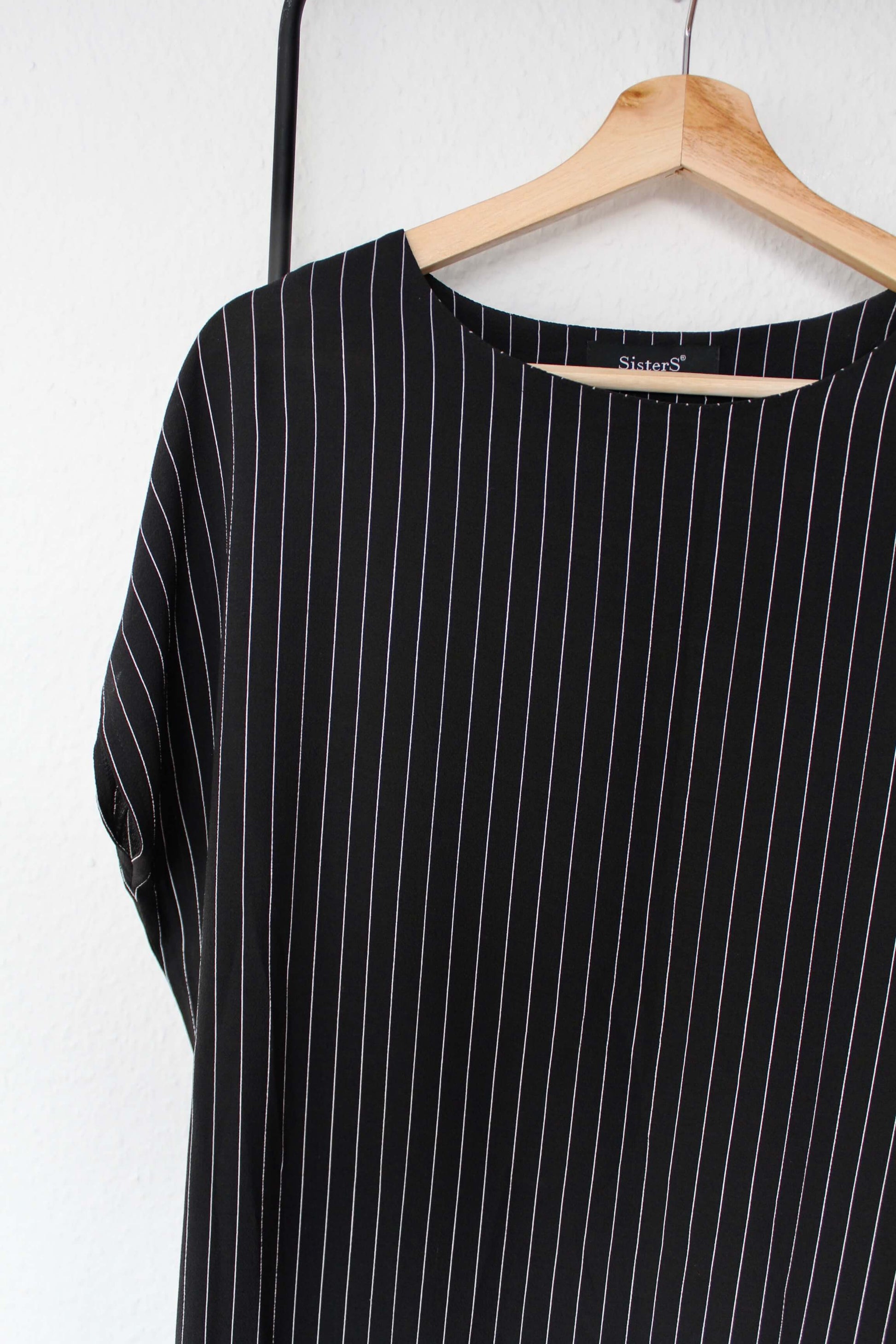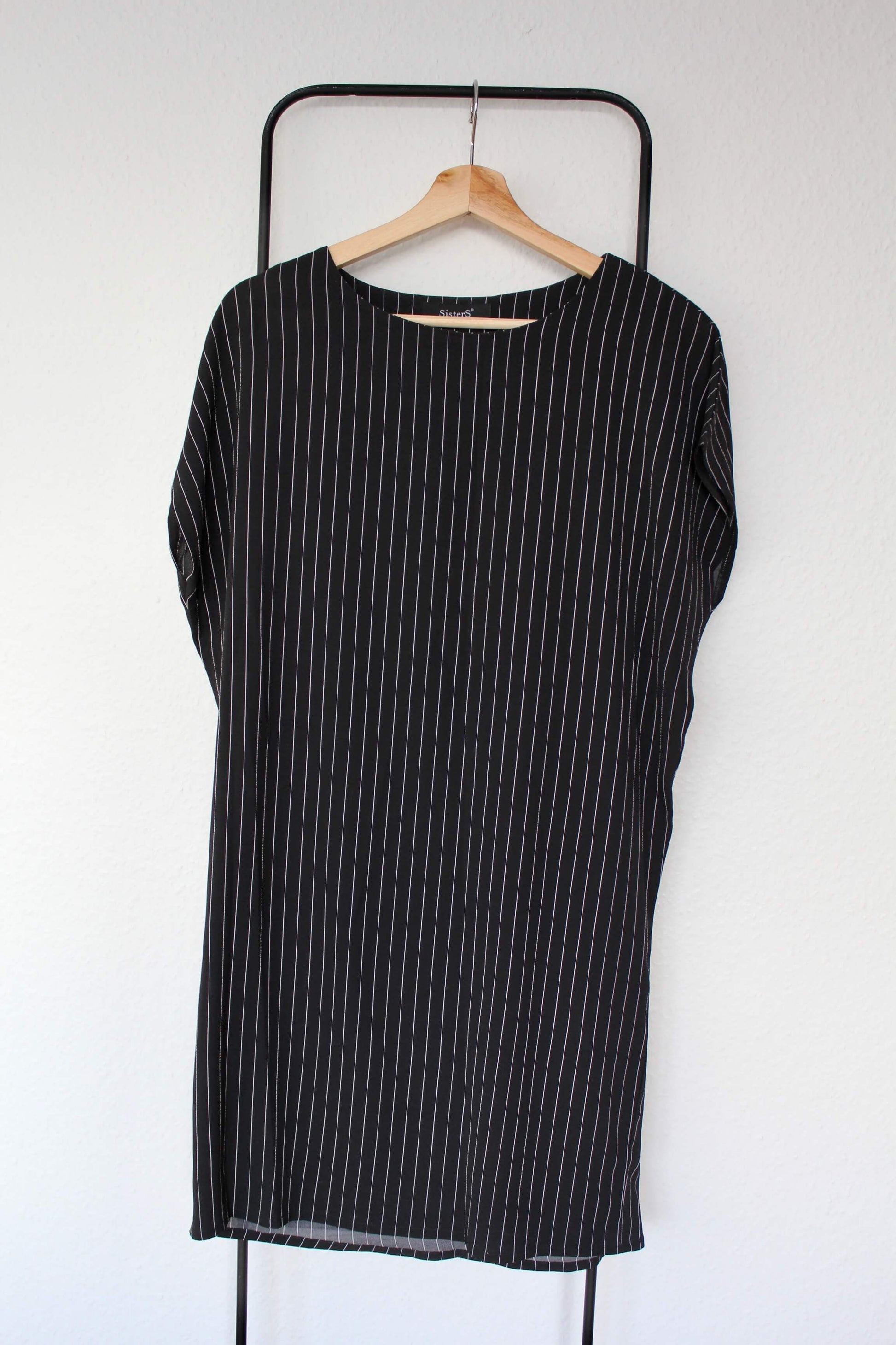 Fin og enkel kjole fra Sisters point i størrelse S. Kjolen er sort med hvide striber. Den har rund hals og en flot løstsiddende pasform. Den fremstår som ny ♡