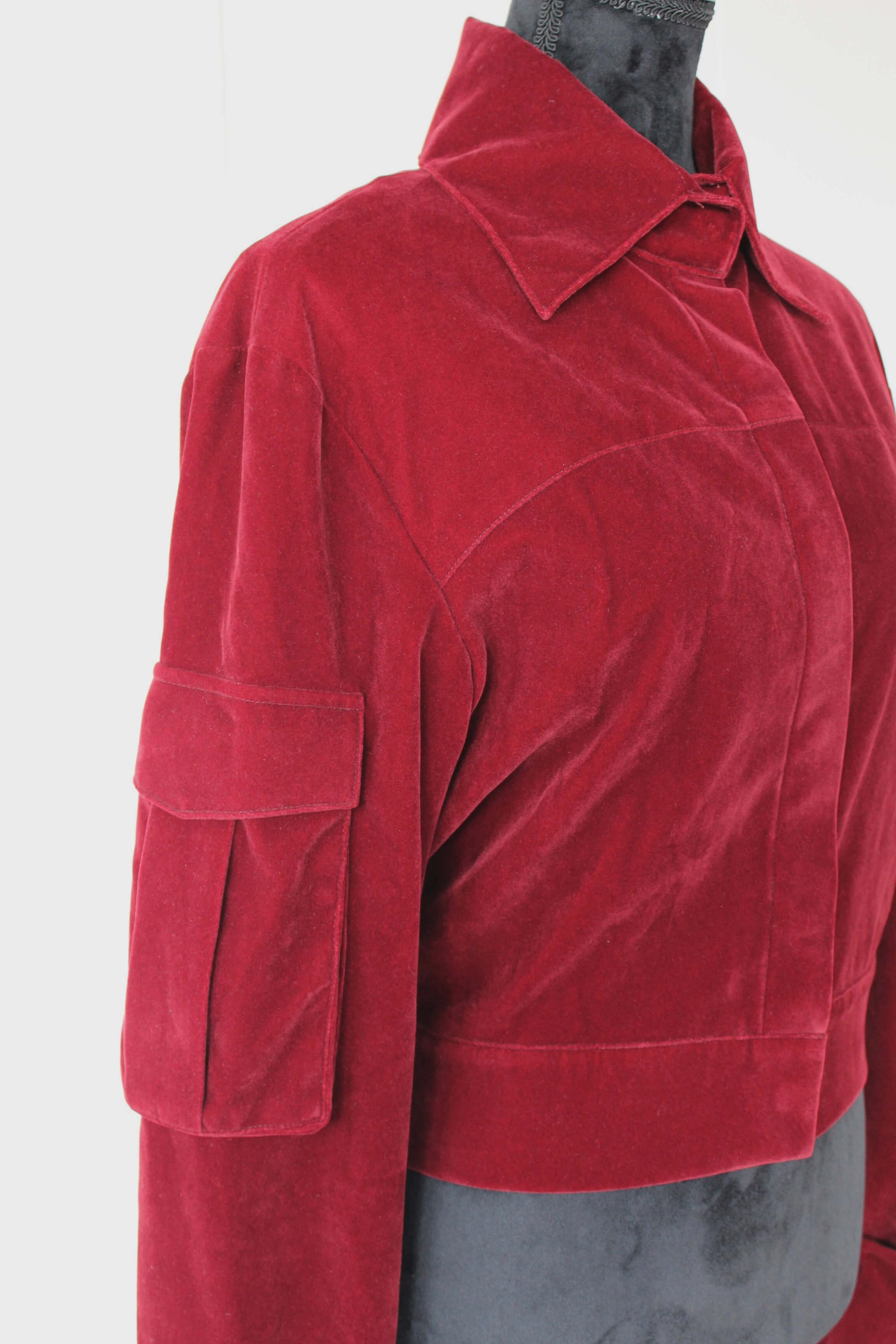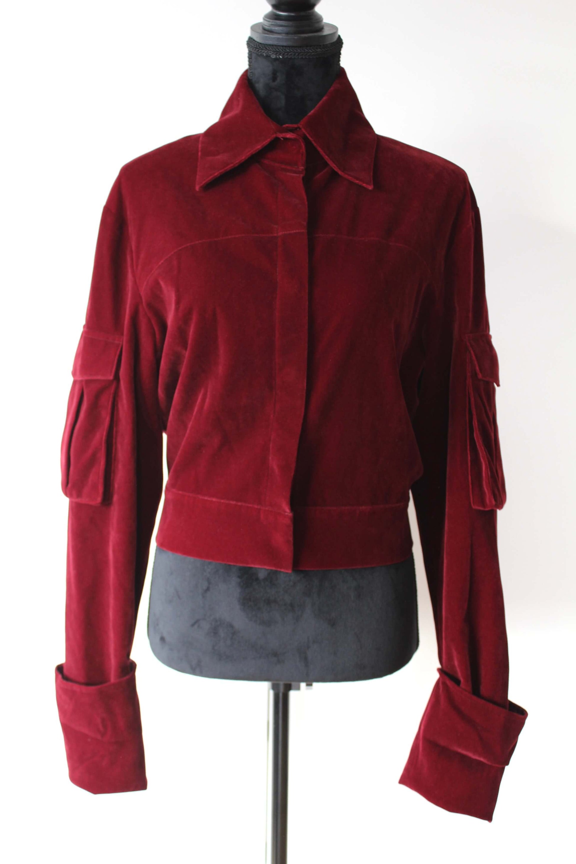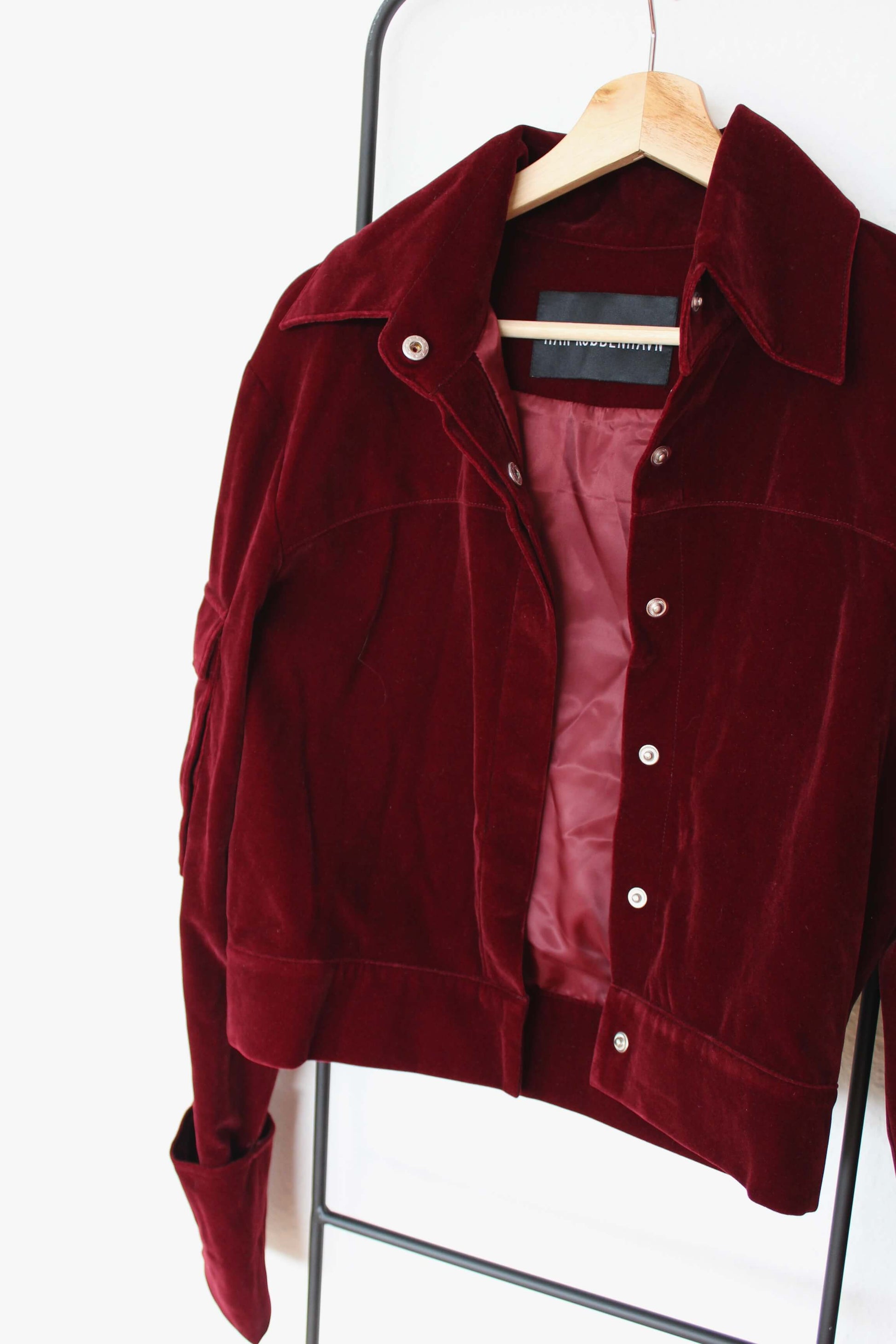 Fedeste velourjakke fra Han Kjøbenhavn i størrelse S. Jakkens farve er burgundy, og den har krave samt knaplukning foran. Den er helt ny med tag ♡